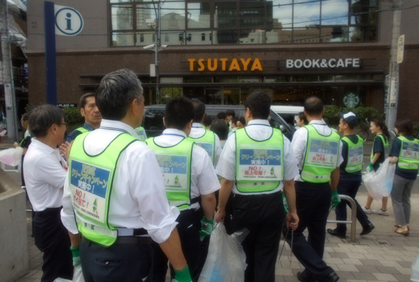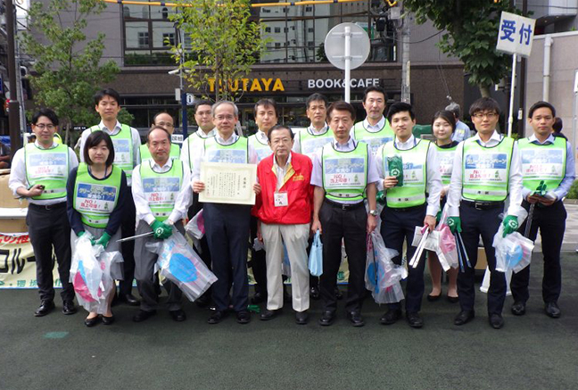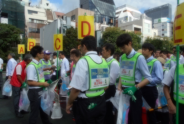 参加在新桥站、内幸町站周边实施的“芝地区清洁活动~街头零吸烟城市!~”